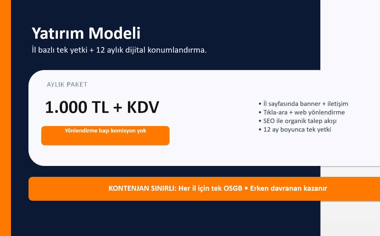 Web Sitemizde Her İl İçin Sadece Bir ( 1 ) Yetkin Osgb Firmasının Tanıtımı Yer Alacaktır.